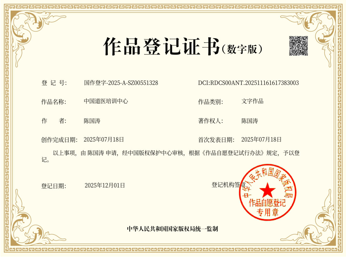 - 📜 教材著作:主编《中华道医集成》等9部行业标准教材