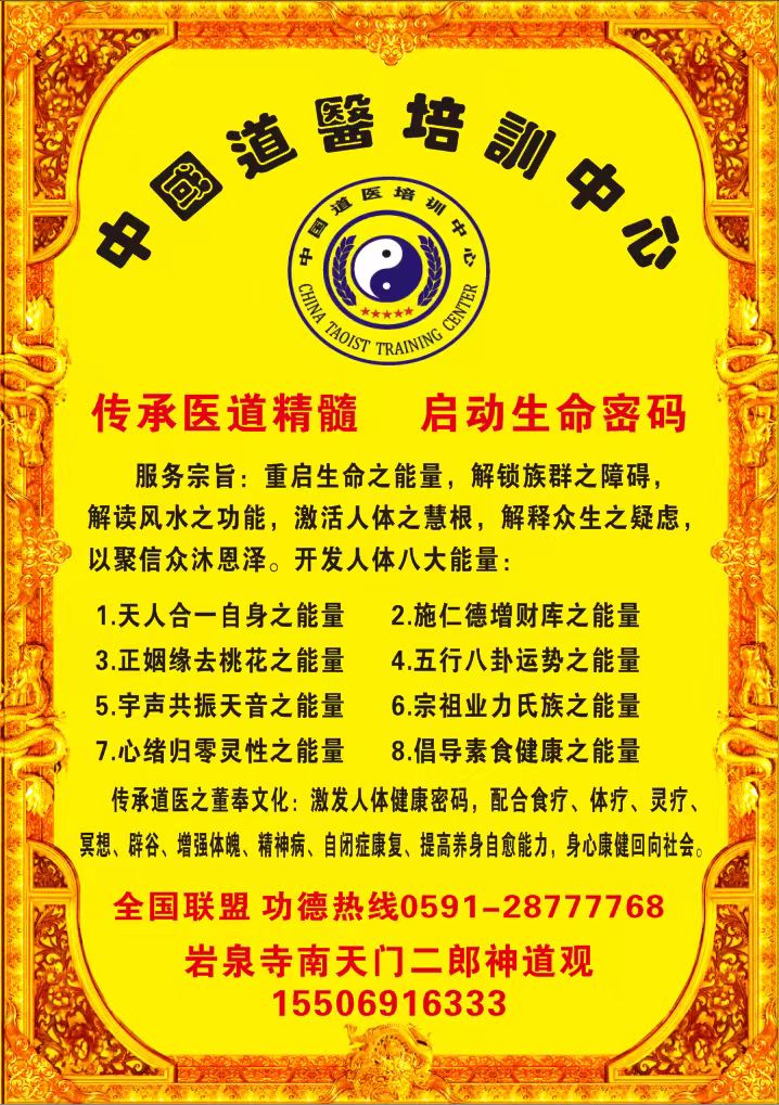 金峰二郎神道医咨询服务部,作为国家级非物质文化遗产「道医诊疗术」指定传承单位,是中国道医培训领域规模最大、体系最完备的职业教育机构。深耕道医文化传承二十余载,累计培训专业道医师逾6800名,占据行业认证人才市场份额的37.6%。